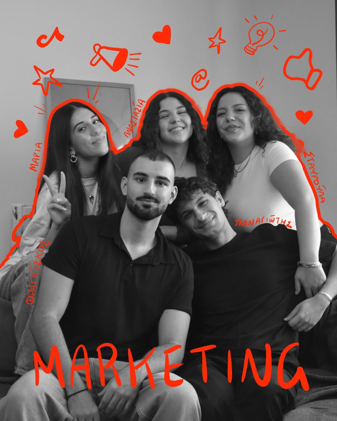 Τα μέλη της ομάδας του Marketing είναι οι εμπνευστές του περιεχομένου κάθε δημοσίευσης που πραγματοποιείται στα social media, αναζητούν τους media partners και διαφορά μικρά special events, γράφουν blog posts φροντίζοντας για το SEO και είναι υπεύθυνα για το newsletter